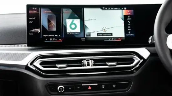 The BMW i5 is a new electric saloon car that comes in two versions: the eDrive40 with 335 hp and the M60 xDrive with 590 hp. It has a range of up to 295 miles and features a luxurious interior, a soundscape by Hans Zimmer, and a Plug and Charge function.