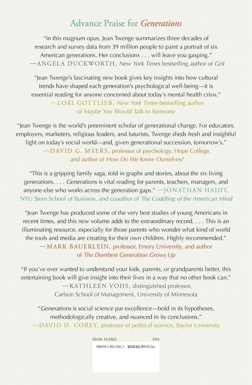 Professor of psychology and “reigning expert on generational change” (Lisa Wade, PhD, author of American Hookup), Jean Twenge does a deep dive into a treasure trove of long-running, government-funded surveys and databases to answer these questions. Are we truly defined by major historical events, such as the Great Depression for the Silents and September 11 for Millennials? Or, as Twenge argues, is it the rapid evolution of technology that differentiates the generations?