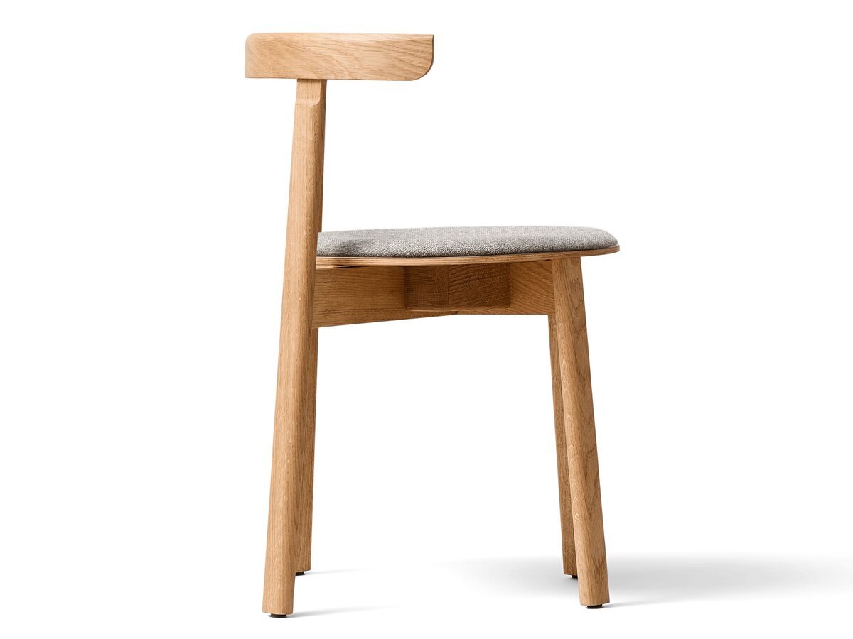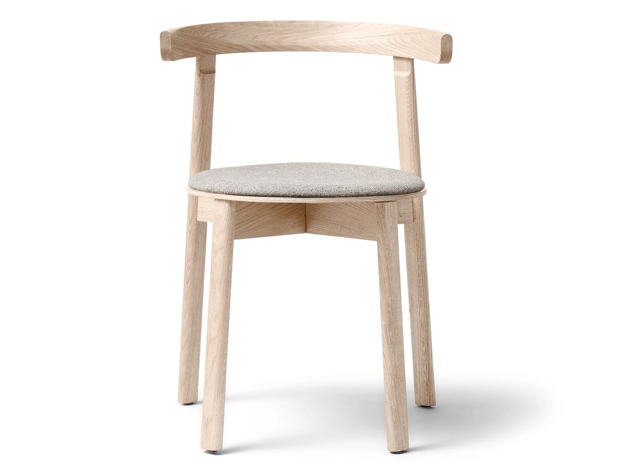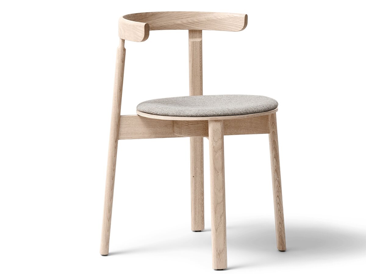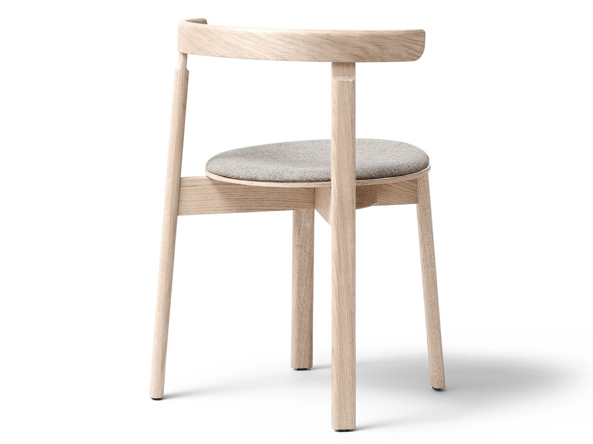 The Lunar Chair by Form & Refine is a versatile wooden dining chair that balances functionality, aesthetics, and comfort. Its distinctive rounded backrest with integrated armrest, crafted from a single piece of solid wood, ensures optimal comfort with both elbow and lower back support, enabling a variety of seating positions. The chair’s padded seat adds extra comfort, and its stackable design allows for efficient space-saving.