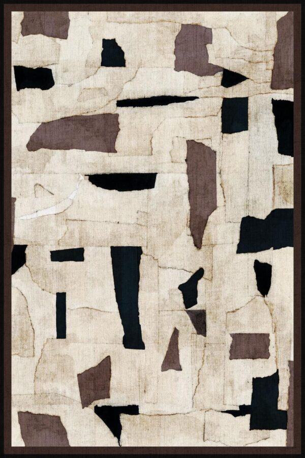 A handcrafted rug made from a blend of bamboo silk and wool, featuring abstract patterns.
