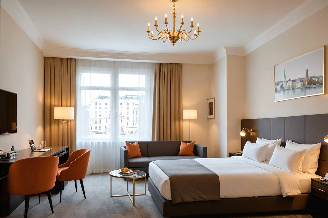 Welcome to our boutique hotel, where sophistication meets comfort in the vibrant heart of Vienna. From the moment you step through our doors, you’ll be enveloped in an atmosphere of refined elegance and warm hospitality. Our dedicated team of professionals is committed to providing you with an unparalleled experience, ensuring that every moment of your stay is nothing short of extraordinary.